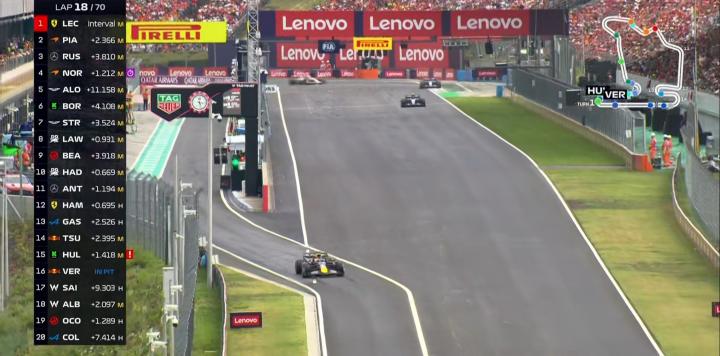第18圈:前方集团中维斯塔潘执行一停,出站后落在第16;