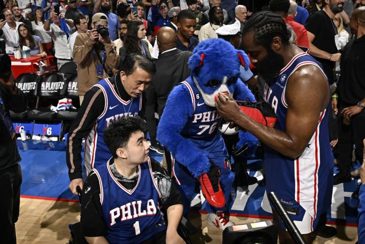 2023年的东部半决赛G4,哈登邀请郝同学来到现场观战,他独揽42分8篮板9助攻,并且在常规时间与加时赛连续两次命中关键球,率领76人战胜凯尔特人。