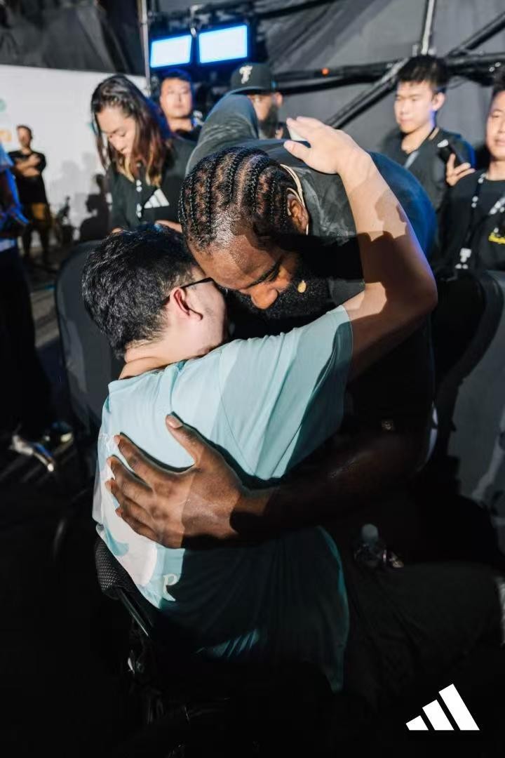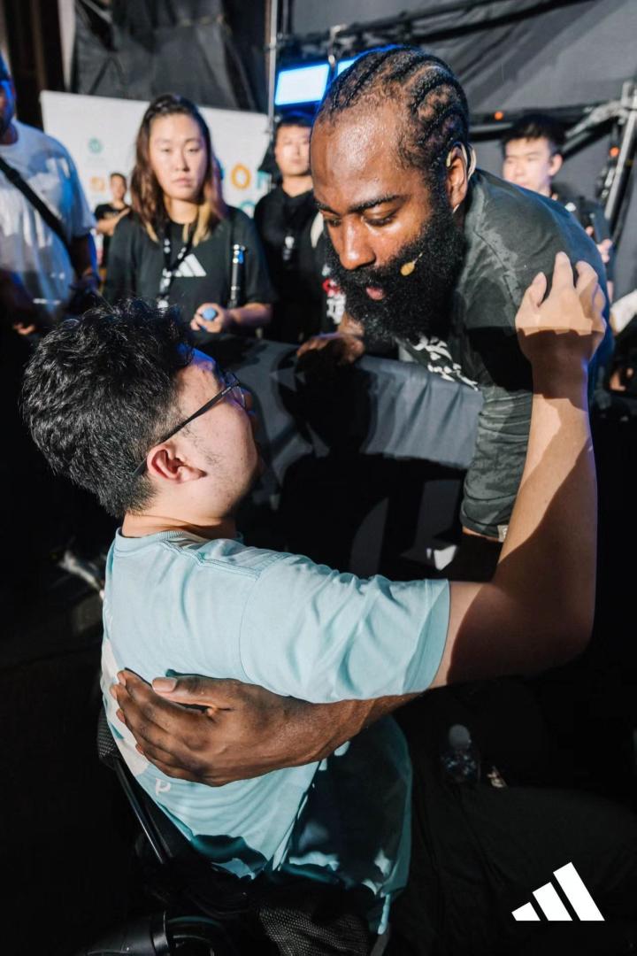 优质偶像,哈登中国行主动拥抱密歇根州大枪击案幸存者约翰-郝
