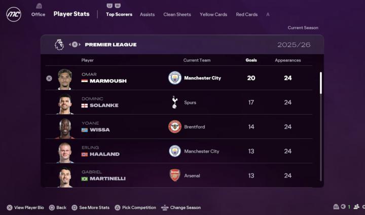 伴随模拟深度的提升,《FC 26》生涯模式首次引入历史赛季数据。只要你选择了该联赛,无论是否亲自执教,该联赛中的球员都将拥有真实的上一赛季数据(24-25赛季),包括: