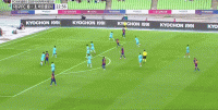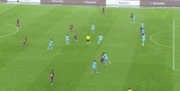 第45+3分钟,梅开二度,加维禁区内挑射破门,巴萨三球领先