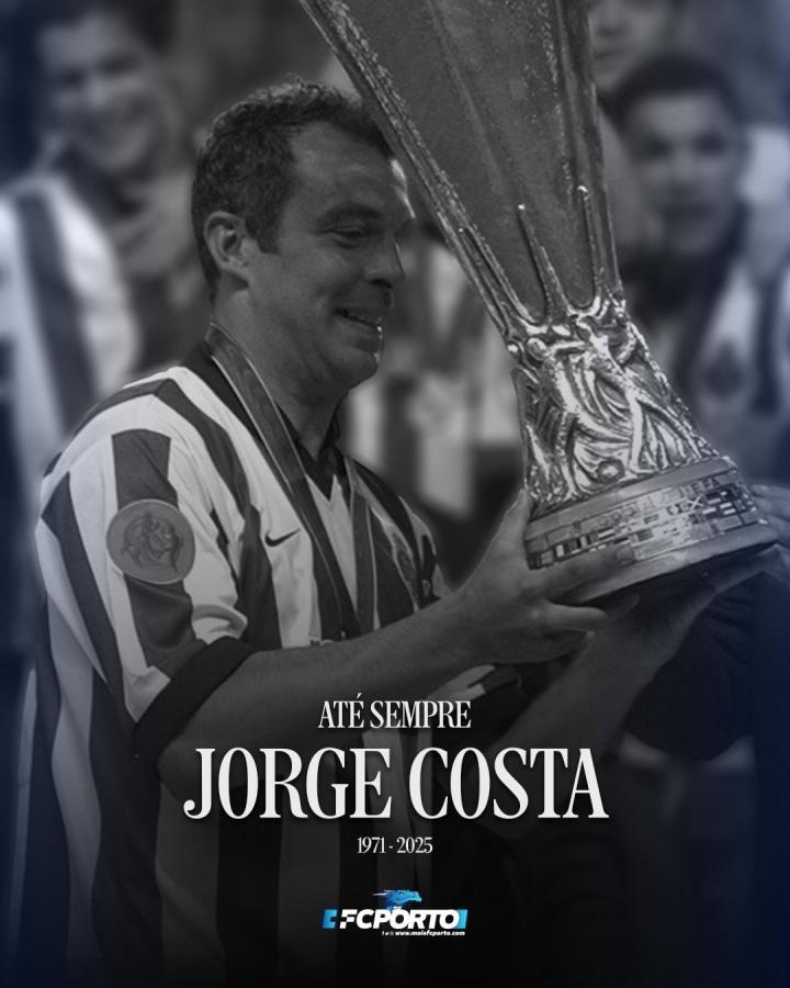 前波尔图队长、2003/04赛季欧冠冠军队成员若热-科斯塔于当地时间周二在波尔图奥利瓦尔训练中心突发心脏骤停,经抢救无效不幸离世,享年53岁。