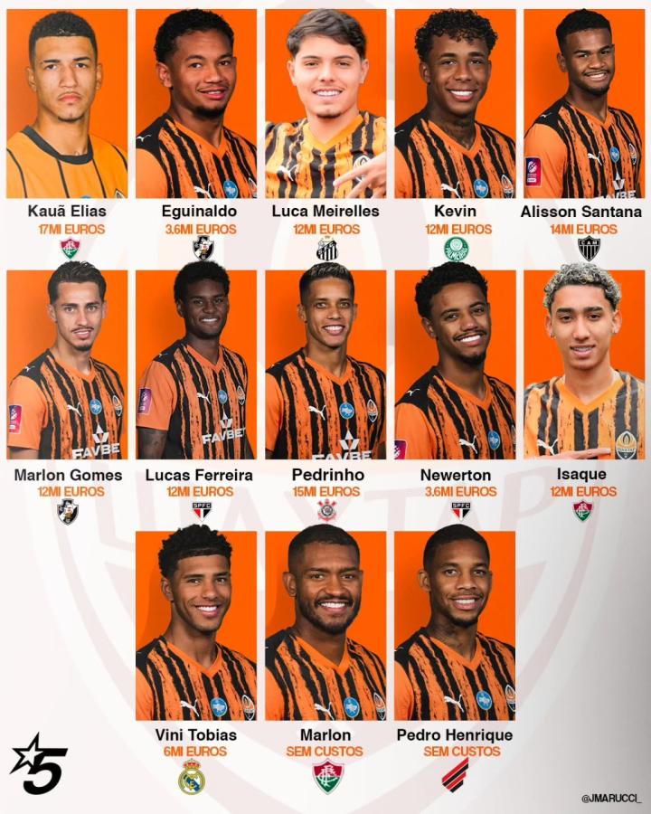 □顿涅茨克矿工:佩德里尼奥(02左后卫)、马龙-戈麦斯(03中场)、托比亚斯(04右后卫)、埃吉纳尔多(04前锋)、内弗顿(05前锋)、阿利松(05右边锋/U20国脚)埃利亚斯(06中锋)卢卡斯-费雷拉(06右边锋/U20国脚)伊萨克(07攻击手/U20国脚)梅雷莱斯(07中锋/U20国脚)