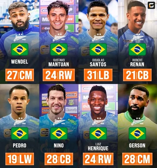 泽尼特:道格拉斯-桑托斯(94左后卫/国脚)尼诺(97中卫)热尔松(97中场/国脚)温德尔(97中场)曼图安(01右边卫)路易斯-恩里克(01右边锋/国脚)佩德里尼奥(06前锋/U20国脚)