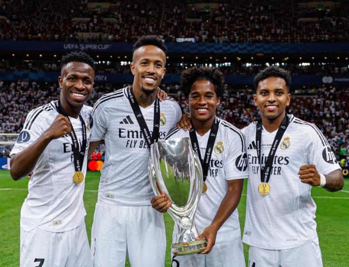 □皇马:米利唐(98中卫)维尼修斯(00左边锋/国脚)罗德里戈(01前锋/国脚)恩德里克(06中锋/国脚)
