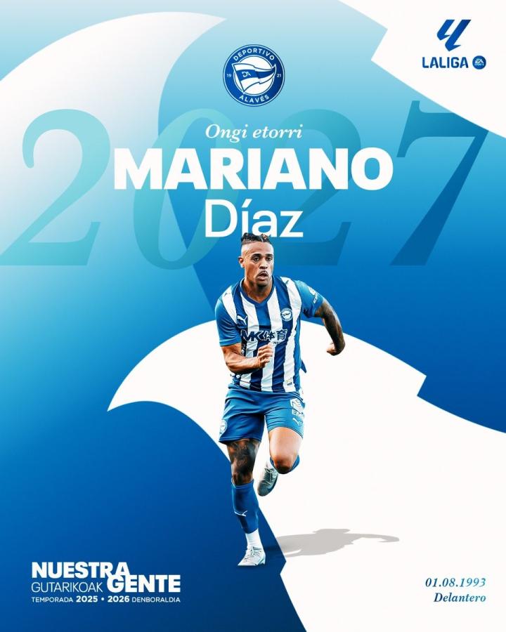 阿拉维斯官方宣布,俱乐部与马里亚诺就合同达成协议,合同有效期至2027年。