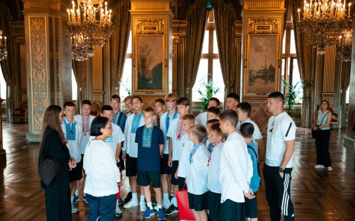 该媒体详细描述了孩子们的参观过程,称远离了轰炸与恐惧,年轻的足球运动员们重新找回了笑容。从市政厅的参观到卢浮宫金字塔前的合影,再到奥运圣火盆,每一个细节都经过精心安排,只为让他们忘却灰暗的日常生活。而就在这一刻,一阵传统的乌克兰民谣旋律飘荡在卢浮宫的花园中,为整个场景增添了一抹阳光。这20名手持蓝黄相间国旗的孩子齐声合唱,歌声伴随着歌手的旋律回荡在好奇的目光中。这是一个魔幻的瞬间。尽管埃菲尔铁塔和爬楼梯登上的两层观景台始终是备受喜爱的环节,但每个人心中都有一个特别难忘的时刻。小球员尼基塔和其他人对宏伟的巴黎市政厅感到惊叹。而另一名小球员米龙则更喜欢克莱枫丹的更衣室和法国国家队球衣。