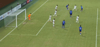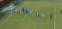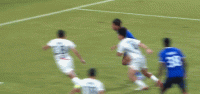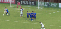 第43分钟,邦本宜裕主罚任意球直奔球门,程月磊双手将球击出