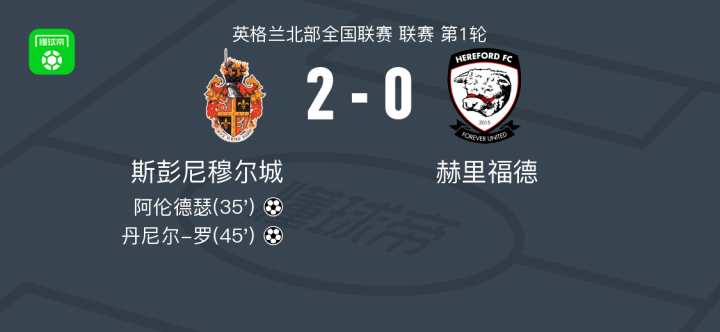 斯彭尼穆尔城2-0赫里福德联,阿伦德瑟建功,丹尼尔-罗锁定胜局
