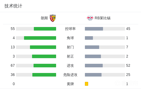 第59分钟,托马森头球破门,朗斯1-0莱比锡