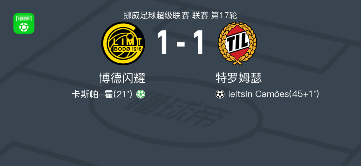 博德闪耀1-1特罗姆瑟,卡斯帕-霍破僵,Ieltsin Camões扳平比分