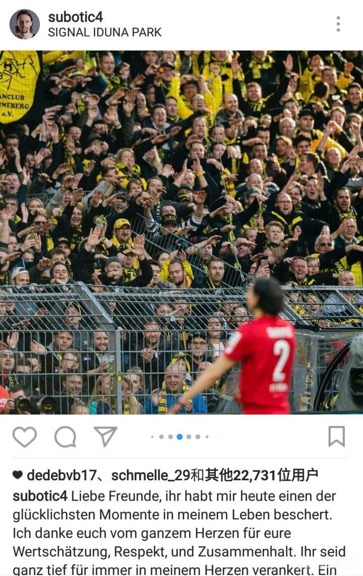 这是苏博蒂奇离开多特蒙德时留给我们的一封信,黄黑球迷们有没有很感动。酥饼的言语间包含着的感情太多太多,他一直都是一位充满斗志的战士,不过无情的伤病和种种因素暂时放慢了他前进的步伐,但是他心中的信仰和斗志从来都没变!这九年的记忆依然在脑海中回荡,这段故事永远没有结束,属于酥饼和黄黑的故事还远远没有结束,这里永远有你的停车位!