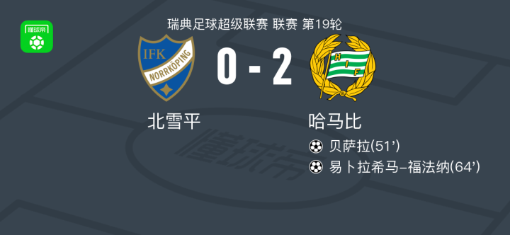哈马比2-0北雪平,贝萨拉建功,易卜拉希马-福法纳锁定胜局