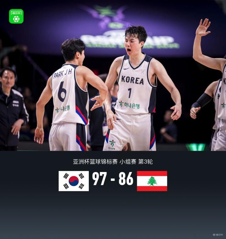 韩国97-86力克黎巴嫩,李贤重28+6+5,柳基相28分