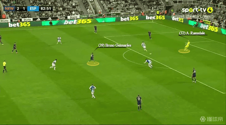 巴恩斯和利夫拉门托在上赛季左路建立了默契,经常互相进行重叠和反向套边配合。他们的连接促成了纽卡斯尔联在联赛杯决赛中对阵利物浦的第二粒进球(如下图所示)。