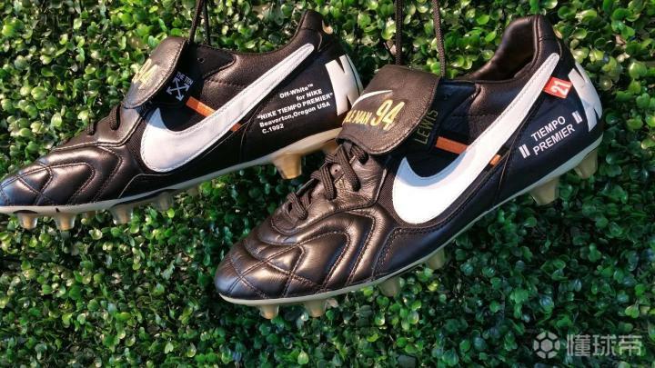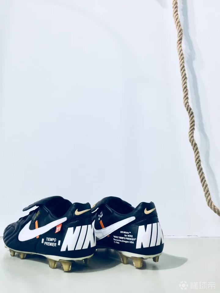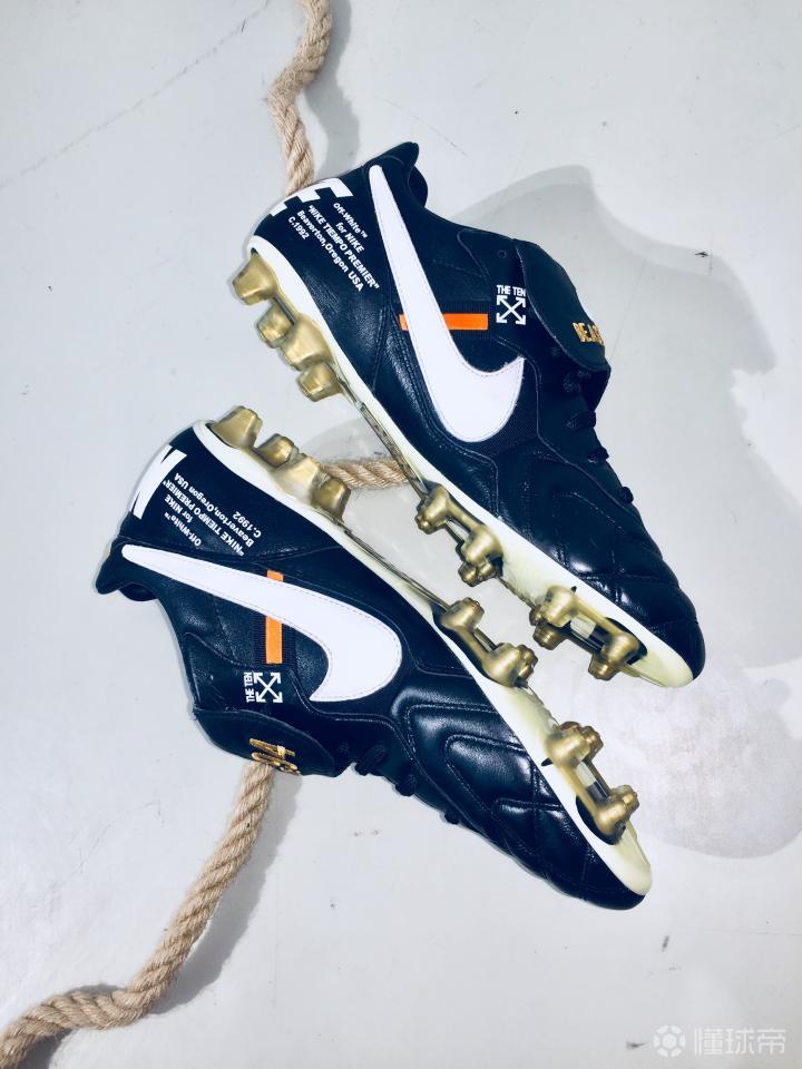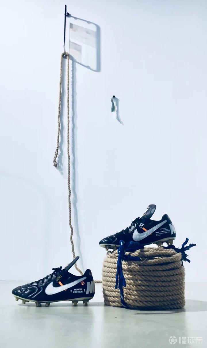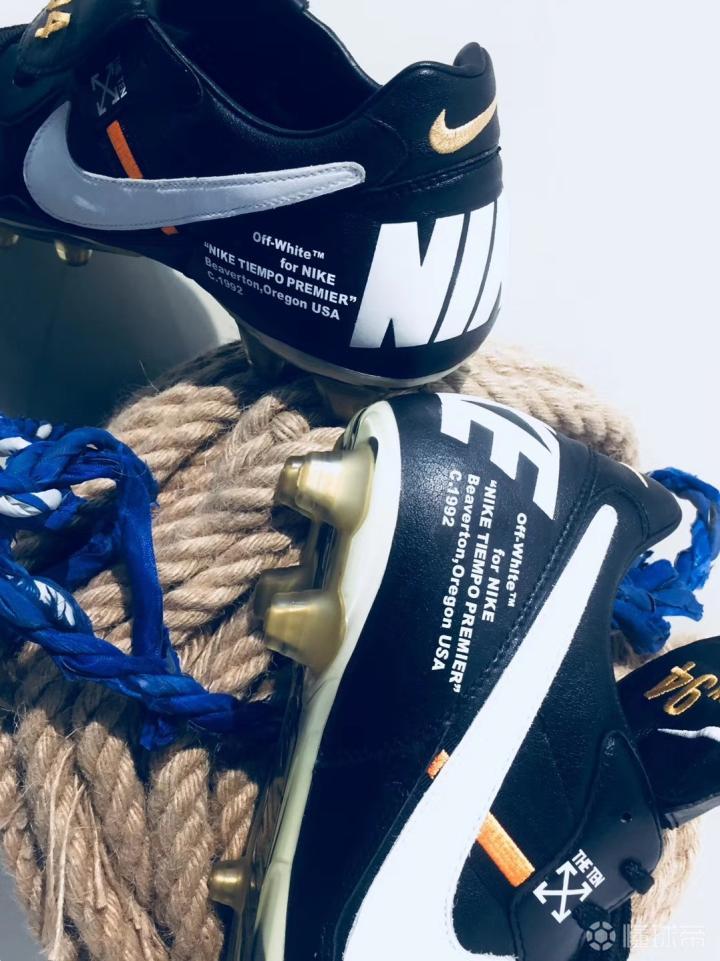 反而最近朋友圈刷出的一张神图让我觉得无敌。一双nike的tiempo premier 居然也是offer white联盟,看上去煞有其事,难道nike还出了新款足球鞋联名。最要命的鞋舌居然还是不穿透刺绣。