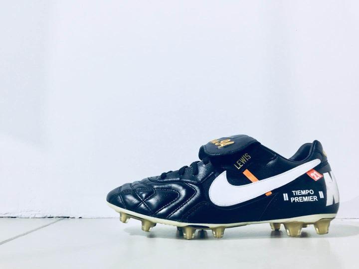 nonono,这是不可能的,作为足球鞋玩家,肯定一眼就认出了这是一双2009年nike发布的tiempo premier 94复刻,但是经过了非常复杂的id定制。
