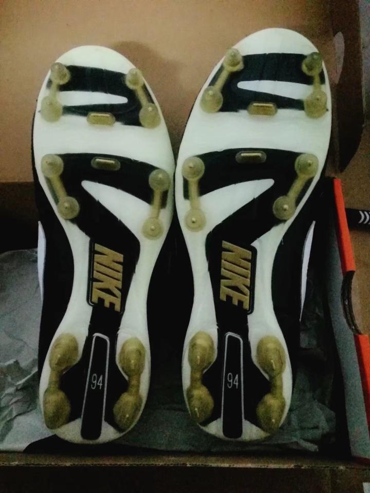 那么这双鞋有啥说法,还要追溯到24年前的1994年,当年nike为本土世界杯推出了tiempo的第二代产品,也是最经典的tiempo premier,当年世界杯决赛场上,巴西队的罗马里奥和意大利队的马尔蒂尼,都使用这款鞋,唯一不同一个是fg,一个是sg。还有当年躺冠的外星人,也穿的这双鞋,第一批使用过这款鞋的球员,大部分早就退役了,比如坎通纳,坎波斯,安迪穆勒。只有马尔蒂尼和大罗,最终成为了nike的传奇球星。