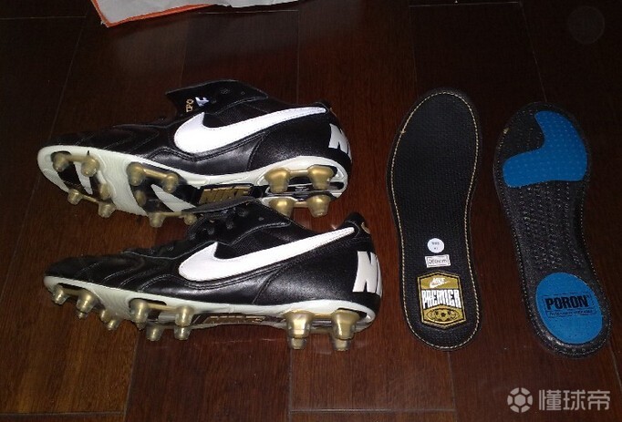 所以在2009年马尔蒂尼退役前夕,nike为马队推出了1994复刻的tiempo premier,量产有意产的限量版本和国产非限量版本。这款鞋的还原度相当高,颇具诚意,意产版本出了马队,在巴西踢球时的大罗和意大利国脚帕齐尼,也使用过。而国产版本虽然没有大牌球星穿,但是在民间是很多野球怀旧球星的最爱。鞋子的鞋面设计基本和元年产品一样,超级大的logo,同样的鞋头走线,同样的鞋舌构造,甚至侧面的定型布条都加上了。只是鞋底由于磨具原因是新开发的传奇3鞋底,但样色分布还是和元年有些近似。