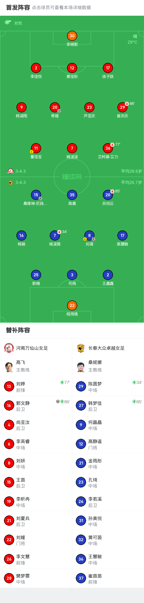 河南万仙山女足2-2长春大众卓越女足,蒂娅首开记录,郭文静救主