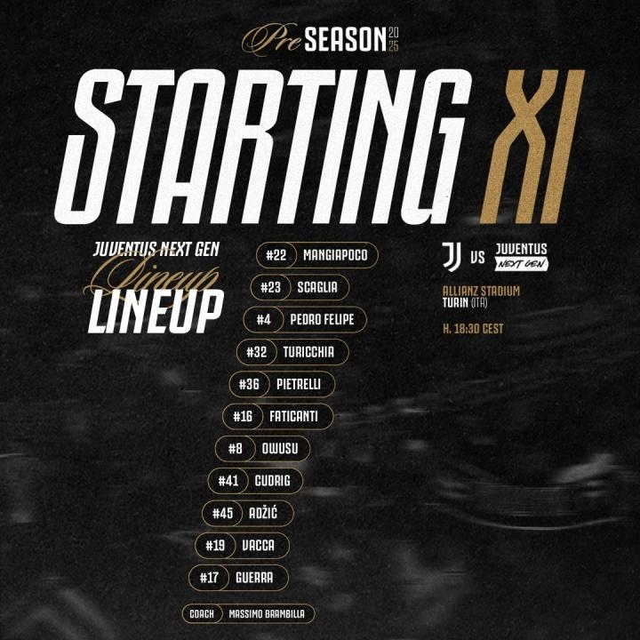北京时间8月14日0:30,尤文图斯与尤文图斯新一代展开季前赛友谊赛。双方赛前公布首发名单。