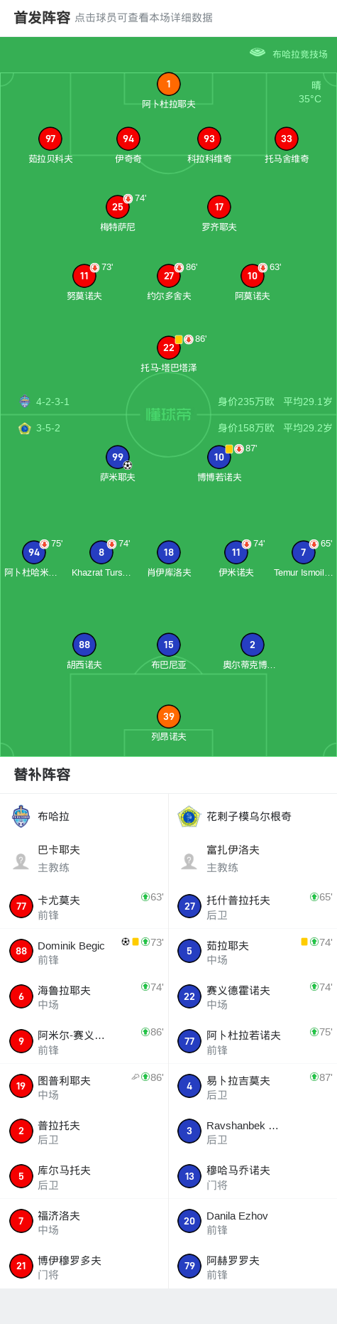布哈拉1-1花剌子模乌尔根奇,萨米耶夫先拔头筹,Dominik Begic扳平