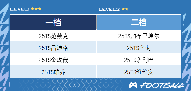 25TS的中卫首发人选和前两年如出一辙,依然是范戴克+吕迪格的“游戏最稳健”二人组,这两名球员不仅全能,他们新增的金特性也非常有意思:前者是捍卫者,加快丢失球权后向本方的回防速率;后者是破坏者,增强顶防的防守力度,刚好对应着两种风格。当然,组纯TS套的话,范戴克31的工资可能略高了,新卡里28工资的帕乔、维维安以及27工资的萨塔洛也都具备着不错的手控手感和回追能力,目前市场价较低,可以作为平民赛季蓝套的中卫备选。