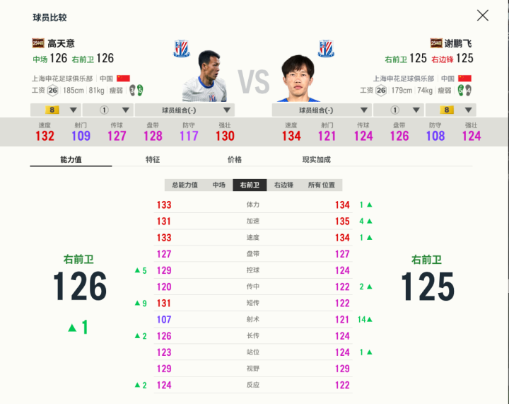 其实谈到江苏队的边锋,最知名的莫过于曾经的矿工球星特谢拉,他的盘带突击能力在中超首屈一指,只可惜游戏里的巅峰赛季卡是FA赛季,能力值有限。从实战角度来看,现效力于申花的两名优秀本土球员高天意和谢鹏飞组成的边路组合效果很好,他们也都是江苏队夺冠的重要一员,前者有着不错的模型和出球能力,后者搓射精准度高。