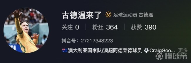 澳大利亚国脚古德温入驻抖音平台,33岁的古德温在视频中表示:“我听说在中国关于我的‘谣言’——我‘救’的人比医院还多,我确实觉得很有趣。”