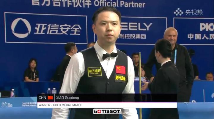 8月14日晚,成都世运会斯诺克项目男子决赛,中国名将肖国栋与塞浦路斯的乔治乌决战三局,夺得了中国代表团在台球项目的第四金。
