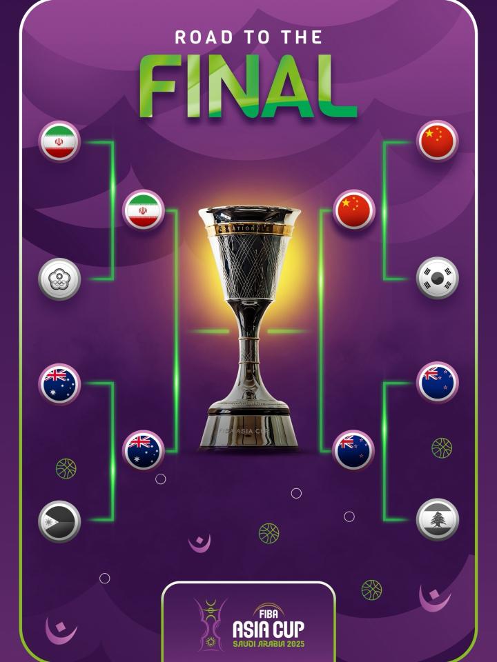 男篮亚洲杯四强出炉:中国vs新西兰、澳大利亚vs伊朗