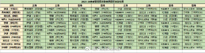2025-26赛季亚冠精英联赛西亚区抽签结果