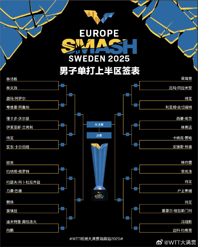 WTT欧洲大满贯男单签表:林诗栋、向鹏、梁靖崑、林高远位列上半区gaoniu @懂球帝2025-08-15 22:59北京时间8月15日,WTT欧洲大满贯瑞典站抽签结果出炉。男单方面,林诗栋、向鹏、梁靖崑、林高远位列上半区,陈垣宇、温瑞博被分在下半区。头号种子林诗栋首轮对手是来自澳大利亚的林文政,梁靖崑首轮对阵伊朗选手阿拉米安,林高远将对阵法国西蒙-高茨,向鹏在首轮就遭遇德国名将奥恰洛夫。陈垣宇、温瑞博被分在下半区,与张本智和、雨果-卡尔德拉诺、莫雷加德等外协高手同区。展开更多