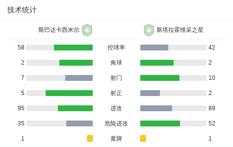 第51分钟,斯巴达卡西米尔球员施塔内克打入一球。