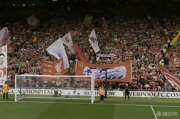 新赛季英超首轮,加入了斯洛特头像的“七贤旗”正式亮相安菲尔德。