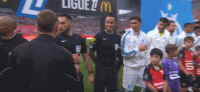 双方球员握手致意,比赛马上开始