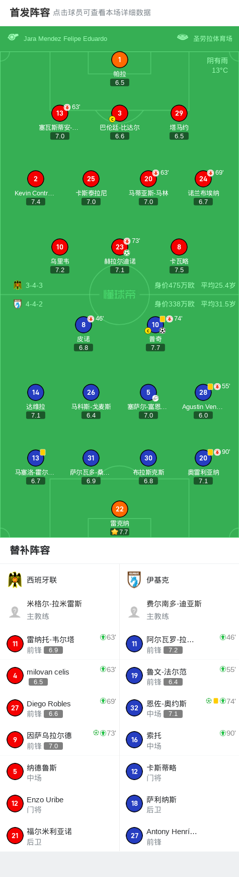 西班牙联2-2伊基克,普奇打破僵局,因萨乌拉尔德扳平
