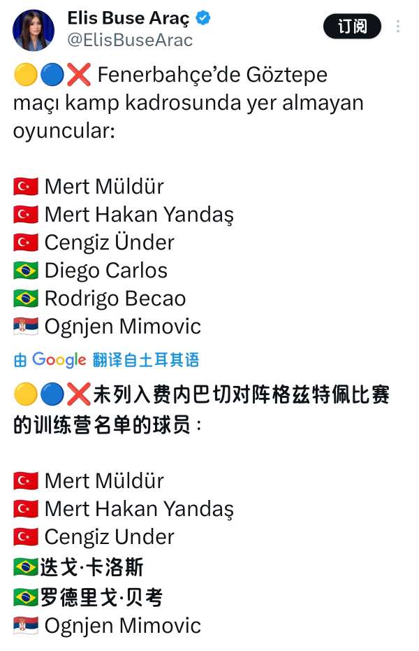哥兹塔比vs费内巴切 比赛大名单埃格里巴亚特、利...芳雪愁言2025-08-16 09:19哥兹塔比vs费内巴切 比赛大名单 埃格里巴亚特、利瓦科维奇、切廷、什克里尼亚尔、塞梅多、瑟云聚、吉库、阿克奇切克、伊伊特·德米尔、奥斯特沃尔德、阿奇·布朗、梅尔坎、于克赛克、阿姆拉巴特、伊尔马兹、卡赫韦奇、弗雷德、希曼斯基、艾丁、塔利斯卡、恩内斯里、杜兰、托松 没进入大名单的球员见图二展开更多