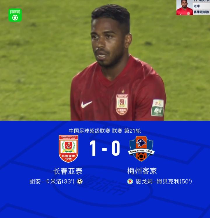 亚泰1-0赛季双杀梅州,卡米洛制胜球,吴亚轲扑点+伤退