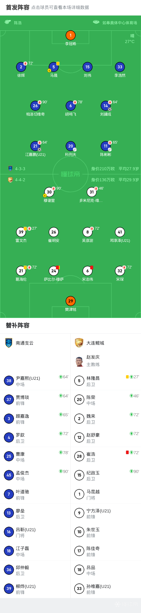 南通支云2-0大连鲲城,刘鍏成、江嘉鹏破门,大连鲲城三人染红