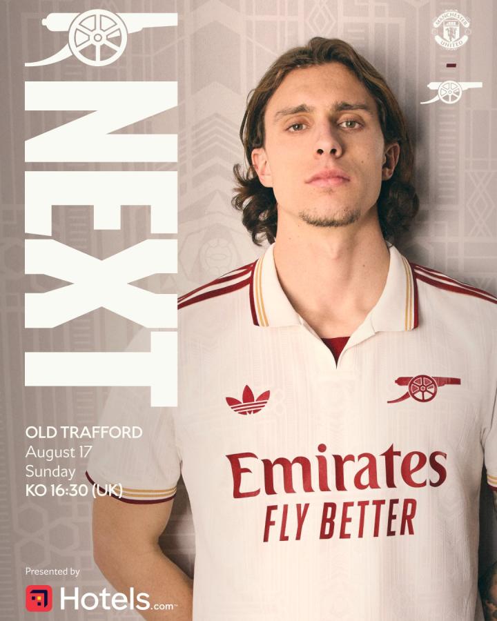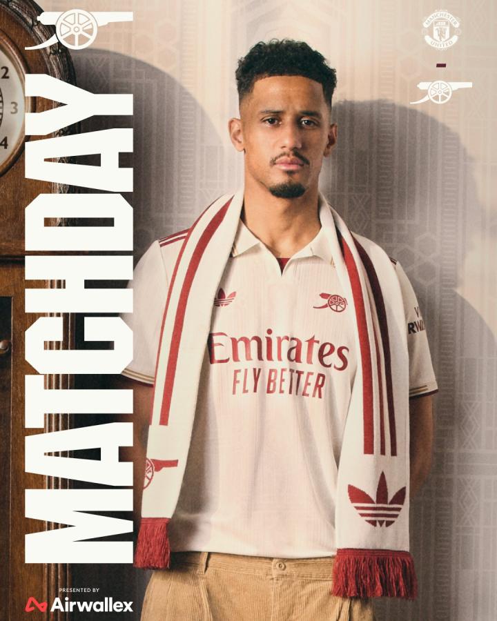 阿森纳官方发布了对阵曼联的预热海报,萨利巴单人出镜领衔。