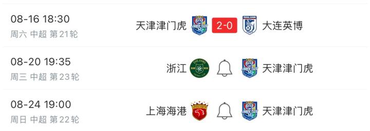 本周五,中超联赛官方宣布,为保障中国U22男足国家队备战2026年U23亚洲杯预选赛,研究决定对中超联赛第22轮和第23轮部分场次进行调整。其中,中超第23轮浙江队vs天津津门虎的比赛,提前到8月20日19:35进行。