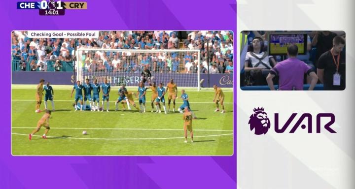 新赛季英超首轮,水晶宫客场对阵切尔西,上半场埃泽任意球进球被判无效,英超官方对此作出解释。