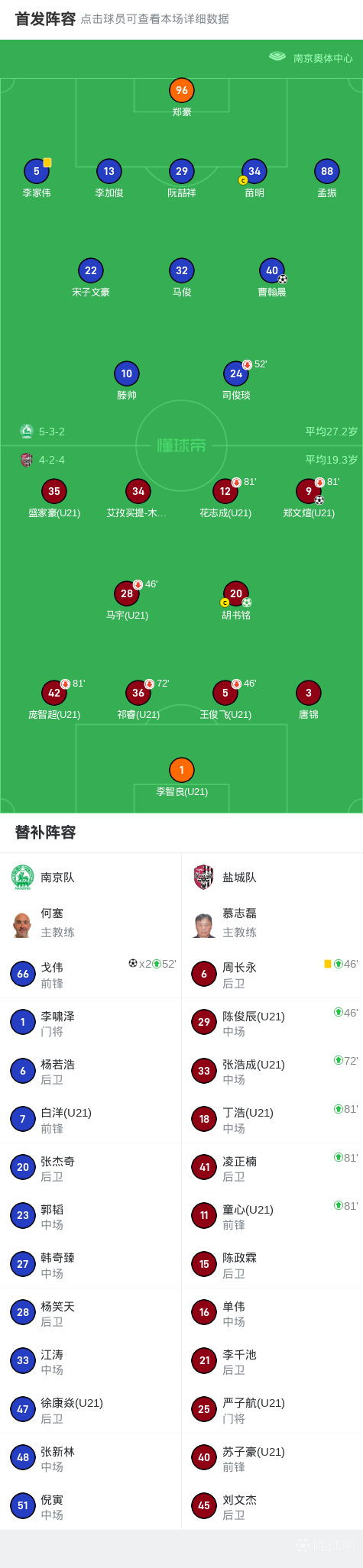 南京队3-2盐城队,戈伟替补登场头球双响,曹翰晨传射
