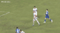 第9分钟,任意球开到禁区,魏志伟头球攻门稍稍偏出