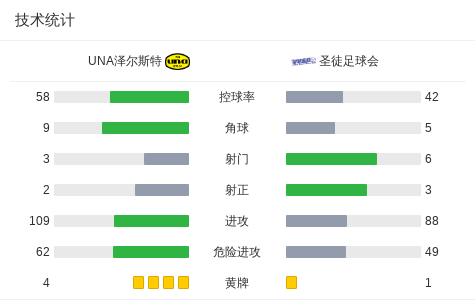 第43分钟,UNA泽尔斯特球员斯梅因斯打入一球。
