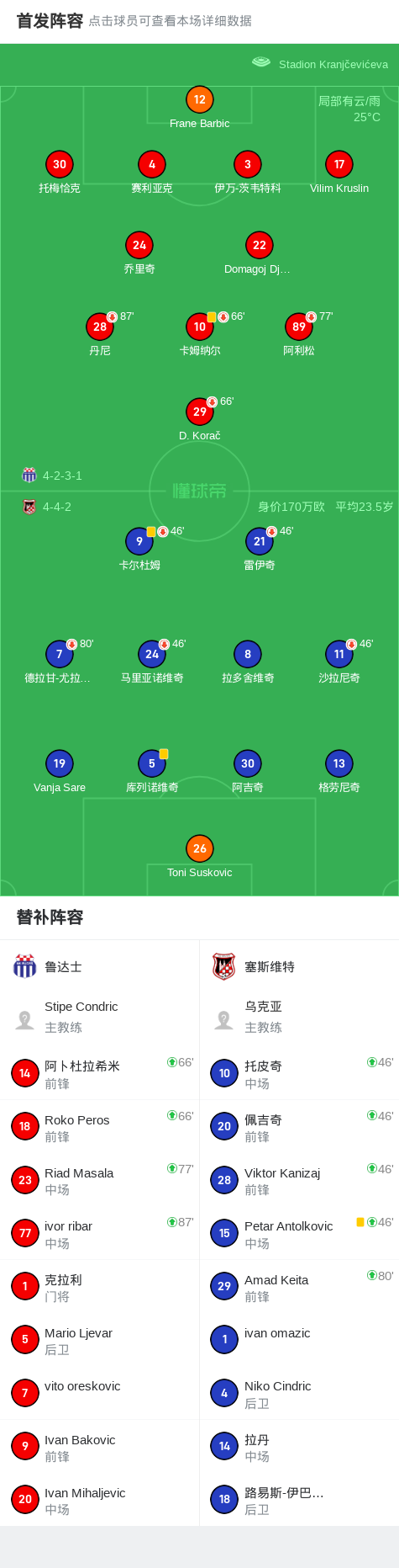 鲁达士0-0塞斯维特,势均力敌战报bot @懂球帝2025-08-18 00:23克罗地亚足球甲级联赛第1轮,鲁达士坐镇主场迎战塞斯维特。全场比赛结束,双方以0-0的比分握手言和。点击查看本场比赛详细数据>>点击查看克甲完整积分榜>> 球队阵容 技术统计 展开更多