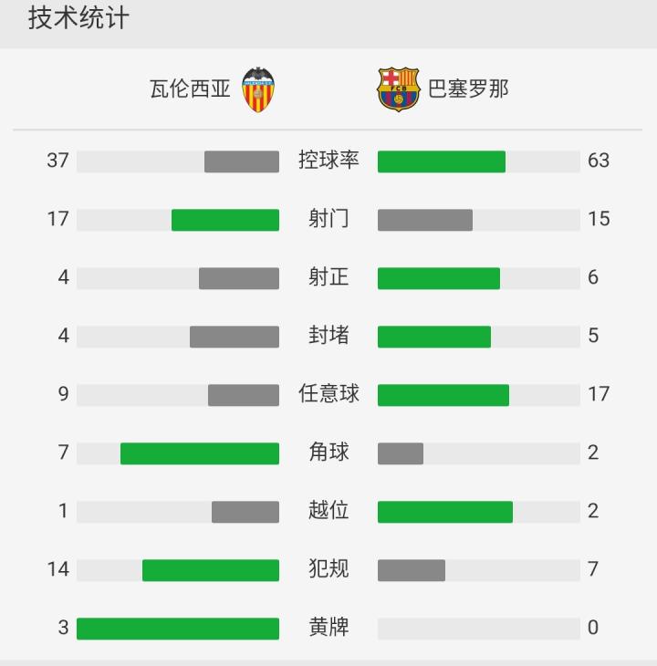 瓦伦西亚首发:1-多梅内克、21-蒙托亚、5-保利斯塔、24-加雷(71'3-维佐)、14-加亚、16-孔多比亚、17-科克兰(55'7-格德斯)、10-帕雷霍、8-比埃托、19-罗德里戈(54'18-索莱尔)、9-扎扎