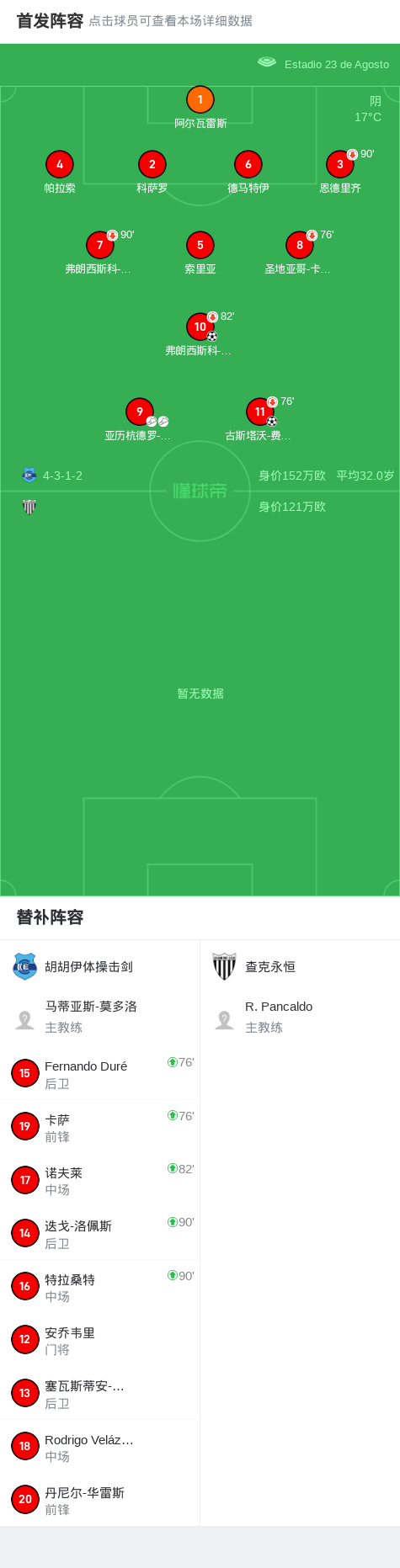 第39分钟,胡胡伊体操击剑球员亚历杭德罗-金塔纳助攻弗朗西斯科-莫利纳打入一球。