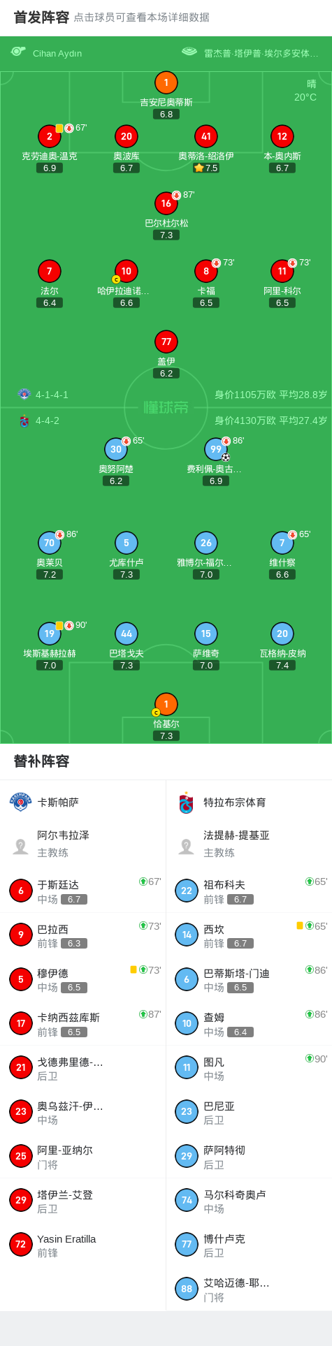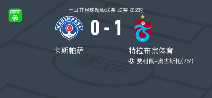 特拉布宗体育1-0卡斯帕萨,费利佩-奥古斯托制胜球战报bot @懂球帝2025-08-19 04:308月19日,土耳其足球超级联赛第2轮,卡斯帕萨主场迎战特拉布宗体育。比赛中,特拉布宗体育球员费利佩-奥古斯托攻入全场唯一进球。最终,卡斯帕萨0-1不敌特拉布宗体育。点击查看本场比赛详细数据>>点击查看土超完整积分榜>>精彩瞬间第75分钟,特拉布宗体育球员费利佩-奥古斯托打入一球。 球队阵容 技术统计 展开更多